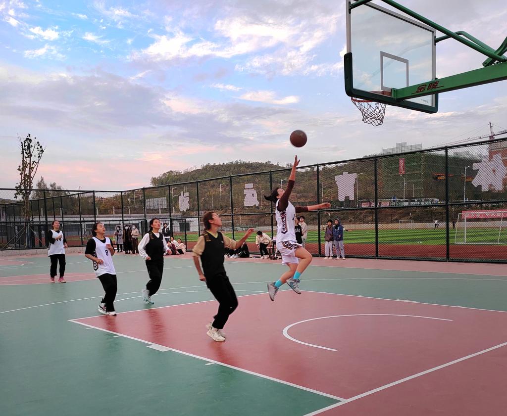 在全校女篮队伍强手如林的背景下,我院女篮队员不惧强敌,适时调整作战策略、优化作战布置。激烈的赛事场地上,各位球员相互打好配合进行传球;旁观场地上,拉拉队铆足了劲加油呐喊,热烈似火的激情点燃了清冷的秋天!疫情不会阻挡女篮的脚步,队员们奋勇争先的竞技状态和昂扬饱满的精神风貌,体现了我院敢拼敢争的篮球精神。