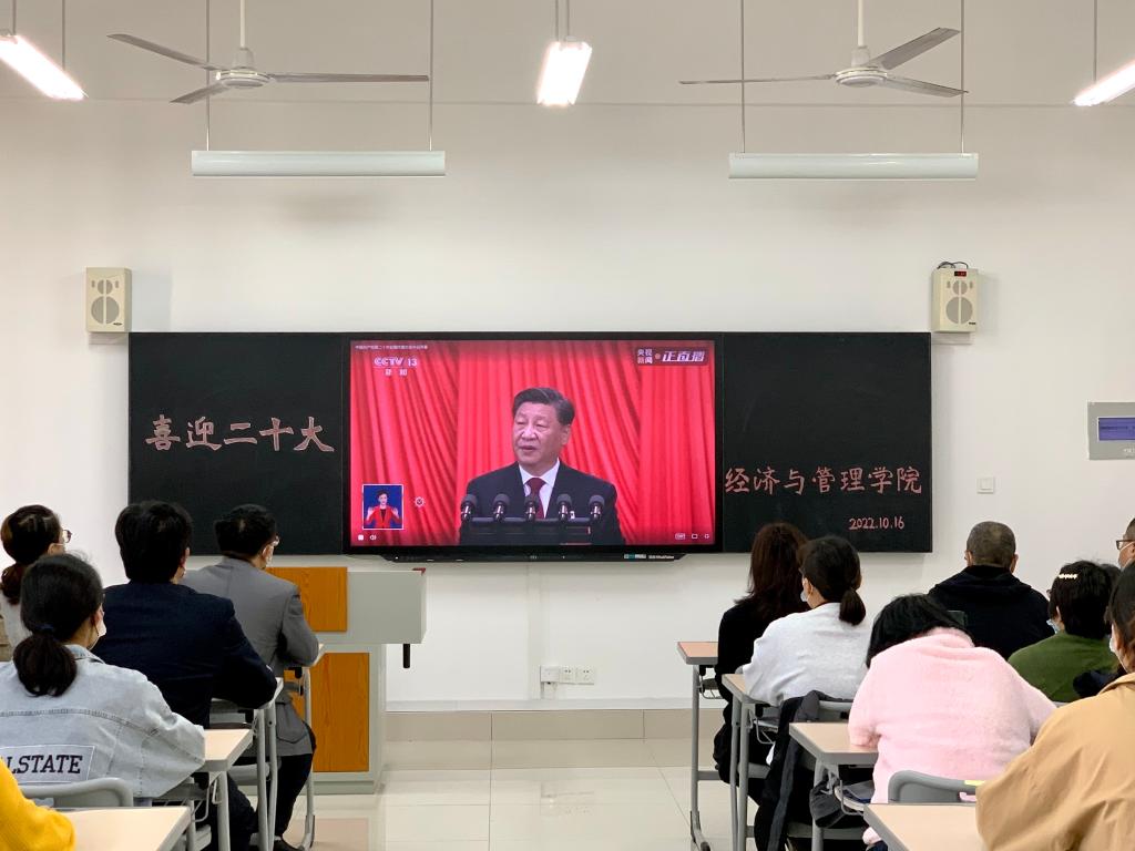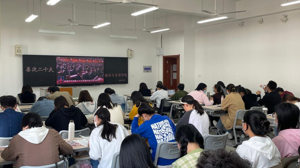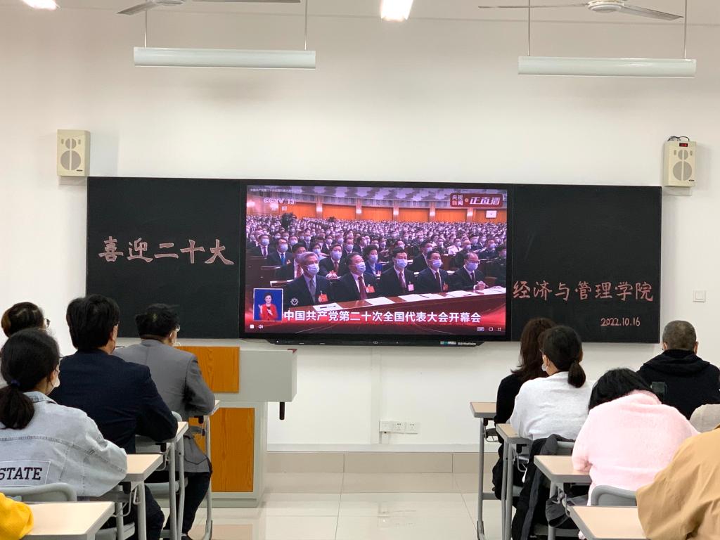 2022年10月16日上午10时,中国共产党第二十次全国代表大会北京人民大会堂隆重召开,我院全体党员教师及学生党员在豁然楼A317室集中收看党的二十大开幕会盛况。各班级以主题班会的方式观看了开幕会,其他师生充分利用教室、宿舍网络、广播电视设施,学习会议精神,共同庆祝党的二十大胜利召开。