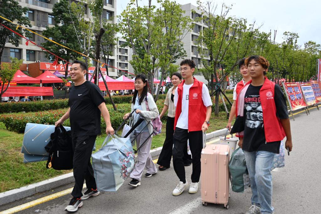 迎新现场,醒目的迎新横幅与色彩鲜明的指示牌交相辉映,为新生及家长提供了清晰的指引。志愿者们身着统一标识,主动帮助新生搬运行李,耐心讲解报到流程,并热情分享校园生活的小贴士,用真诚的笑容和贴心的服务,让每一位初来乍到的新生都感受到了家一般的温暖。学院党政领导亲临迎新现场,与新生及家长亲切交流,详细询问新生的报到情况,耐心解答家长们的疑问,并鼓励新生们要尽快适应大学生活,在经管学院找准目标、勤学善思,勇敢开启人生新篇章。