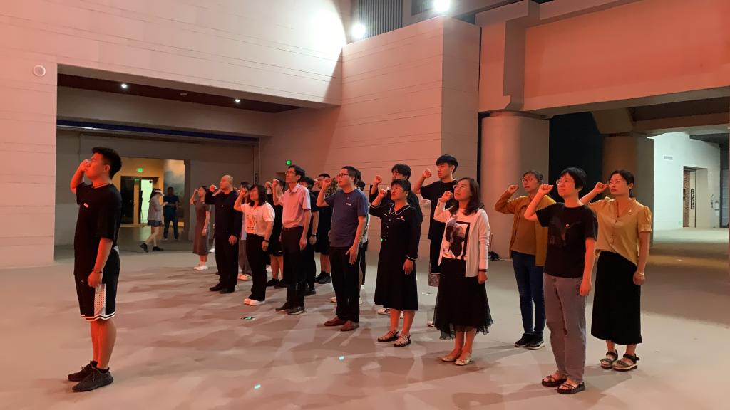 “西边的太阳快要落山了,微山湖上静悄悄,弹起我心爱的土琵琶……”在熟悉的旋律中,经管师生们通过一张张战场照片、一件件历史实物、一段段影像资料,与那段激情燃烧的革命岁月对话,重温了铁道游击队从创立初期到抗日战争胜利那段可歌可泣的、英雄悲壮的历史。随后,全体党员在纪念馆内,怀着无比崇敬的心情,举起右手庄严宣誓,重温入党誓词、不改党员初心,抒发对革命先辈们的崇敬之情。