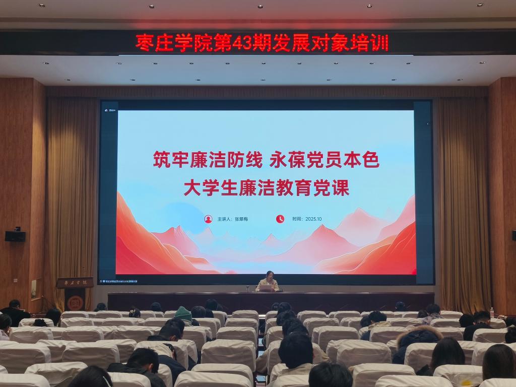为强化党员发展对象的廉洁意识,筑牢廉洁自律思想防线,10月31日晚,学生第二党支部书记张翠梅在崇德楼报告厅为全体党员、发展对象带来了一场以“筑牢廉洁防线 永葆党员本色”为主题的大学生廉洁教育党课。