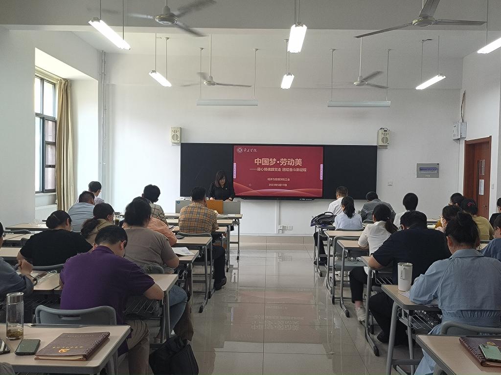 5月17日下午,77779193永利工会全体教职工会议,学习贯彻习近平总书记“五一”前夕重要指示精神,引领全院教职工切实把思想行动统一到重要指示精神上来,切实把习近平总书记的关心关怀转化为奋进新征程、建功新时代的强劲动力,奋力推动学院工会工作高质量发展。学院工会主席谢金萍主持会议并讲话,全体教职工参加会议。