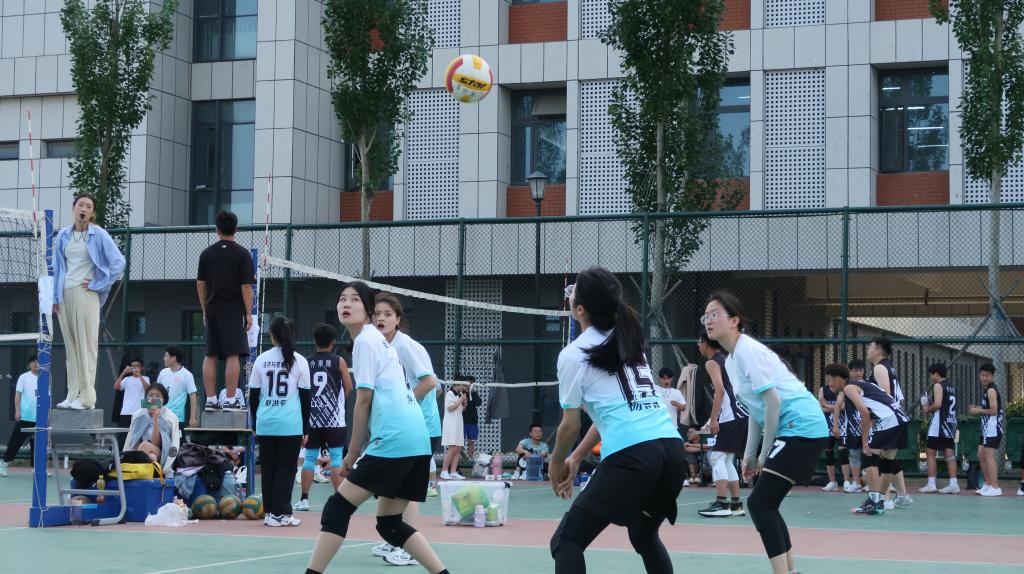 伴着哨声和骄阳,激烈的较量正式开始。赛场上,我院队员奋力接球、巧妙传球、努力拦网、全力救球,排球在女排手中翻飞跳跃,时而平缓、时而急速,赛场上,一声声哨响,激起了我院队员的昂扬斗志,她们分工协作又默契十足,肆意挥洒汗水,愈战愈勇。伴随着一次次精彩的接球扣杀,各队比分你追我赶,场面高潮迭起、精彩纷呈,在我院学生的一声声欢呼呐喊中,我院女排披荆斩棘,战无不胜,荣获冠军