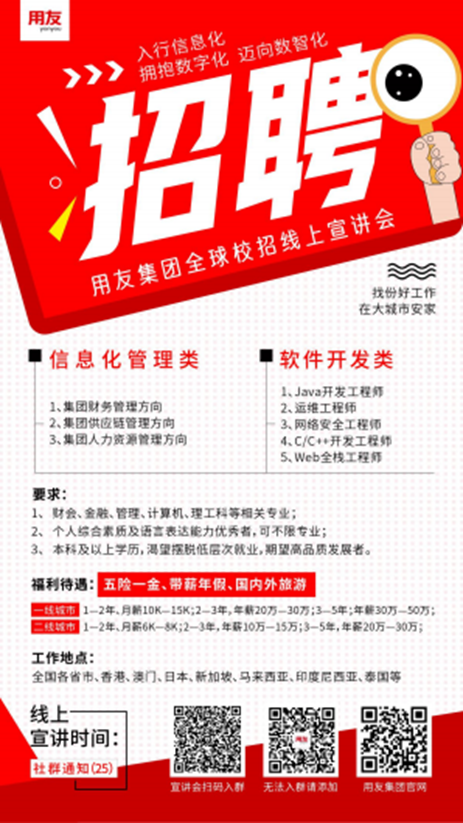 招聘执行单位:用友人才产业基地(态盟科技集团有限公司)
